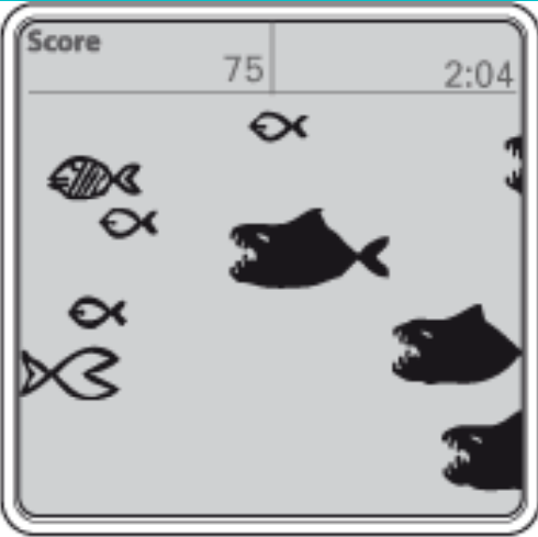 poissons. Vous devez manger les petits poissons que vous croisez et éviter les gros en accélérant ou en ralentissant en tirant sur la poignée. Une partie dure 4 min !